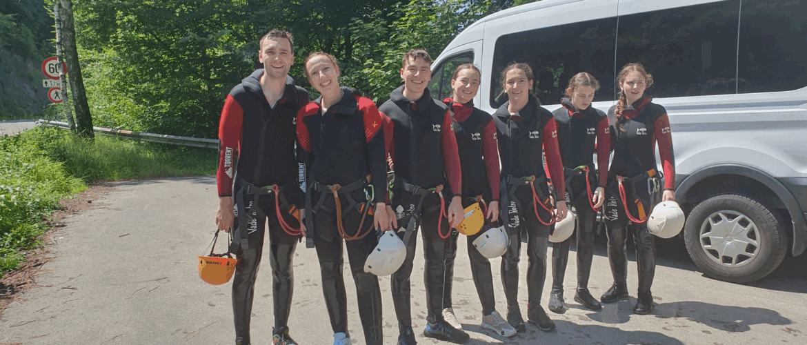 Der erste Tag begann mit einer spannenden Canyoning-Tour, bei der unsere Teilnehmerinnen und Teilnehmer durch enge Schluchten, über Felsen und durch sprudelndes Wasser navigierten. Ein echtes Abenteuer zum Start!